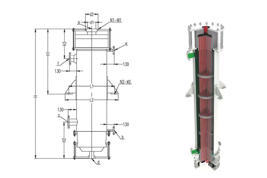 列管式石墨換熱器主要用于物料的加熱、冷卻、冷凝、蒸發(fā)和吸收,能承受大多數(shù)有機(jī)或無機(jī)介質(zhì)。