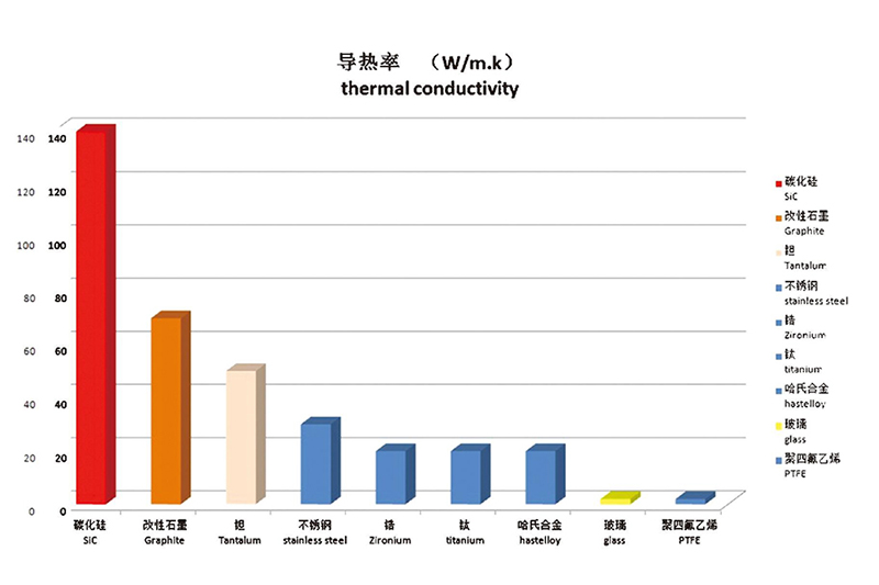 (2)高導(dǎo)熱性能:與玻璃設(shè)備相比,通過高效的換熱材料及結(jié)構(gòu),碳化硅換熱器可減少超過50%的換熱面積。