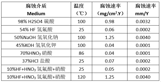 (1)強(qiáng)耐腐蝕性能:除熔融狀態(tài)下的堿金屬,耐受目前已知的所有化學(xué)溶劑。
